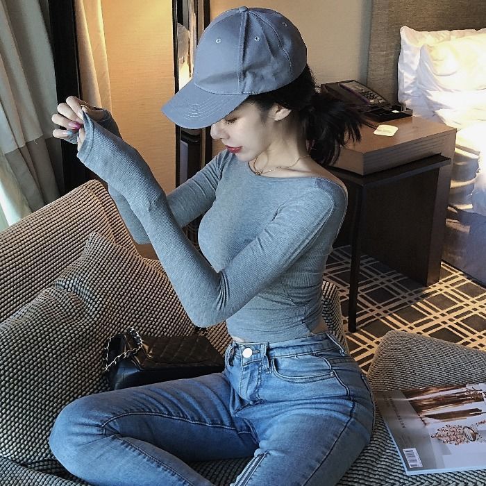 back-exposed long-sleeved t-shirt