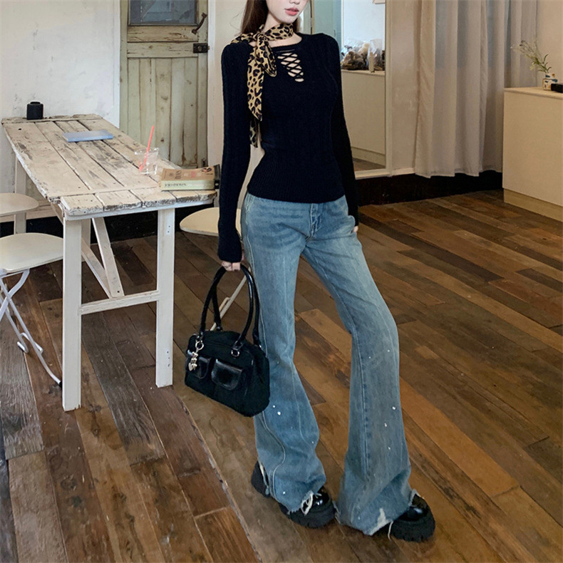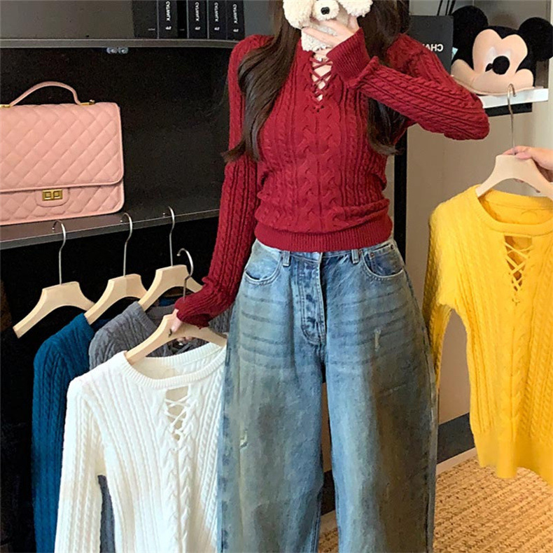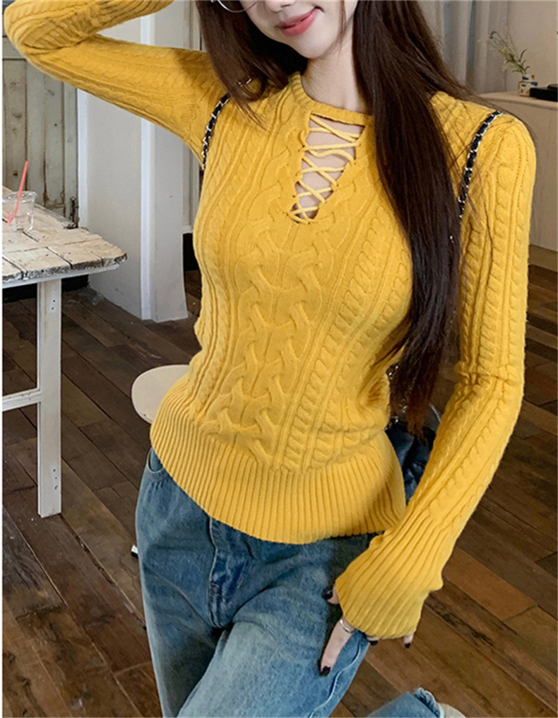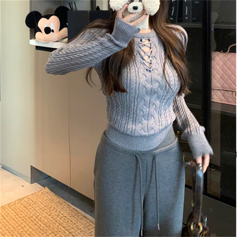 Fashion Design Long Sleeve Slimming Hollow Elegant Sweater Top for Women - Diagonal Collar Casual Hoodie Shorts Suit