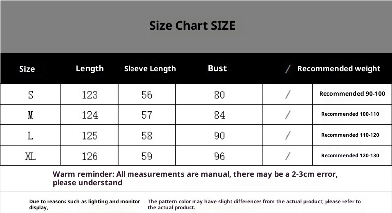 1. Asian sizes are 1 to 2 sizes smaller than European and American people. Choose the larger size if your size between two sizes. Please allow 2-3cm differences due to manual measurement. 2. Please check the size chart carefully before you buy the item, if you don't know how to choose size, please contact our customer service. 3.As you know, the different computers display colors differently, the color of the actual item may vary slightly from the following images.