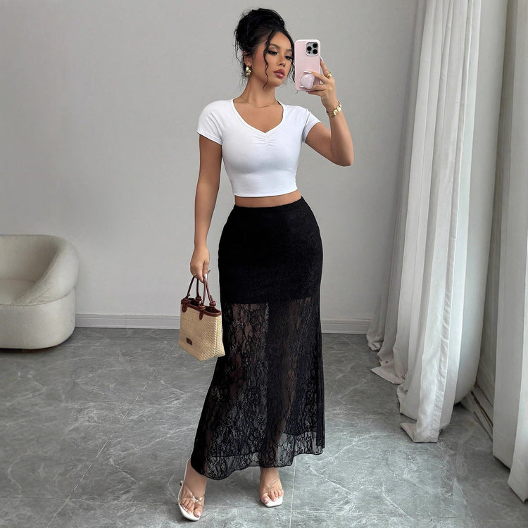 Lace High Waist Slimming Dress for Fall Winter - Flattering Sheath Skirt
