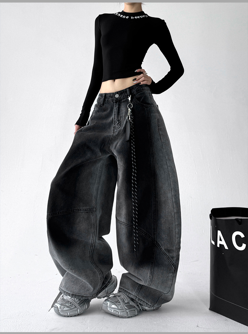 Retro Gradient American All-match Loose Machete Casual Denim Trousers for Women with Long Sleeve Graphic Tees for Women