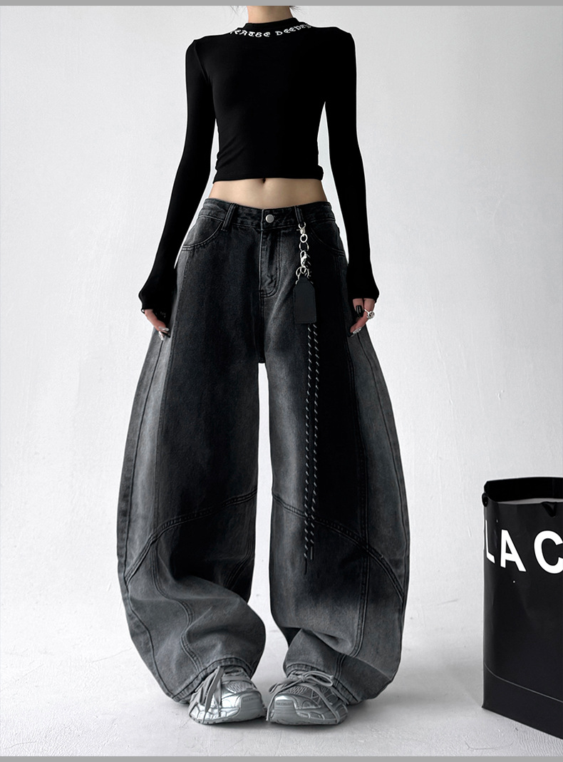 Retro Gradient American All-match Loose Machete Casual Denim Trousers for Women with Long Sleeve Graphic Tees for Women - Florence Luxe