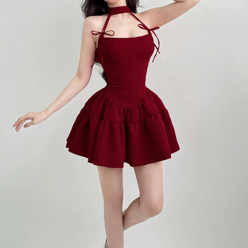 Retro Red Bow Bandage Halter Dress - Perfect Retro Red Bow Dress for Any Occasion