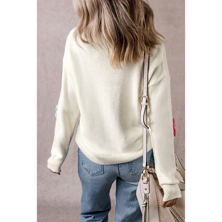 Winter New Flower Crochet V-neck Pullover Sweater Women