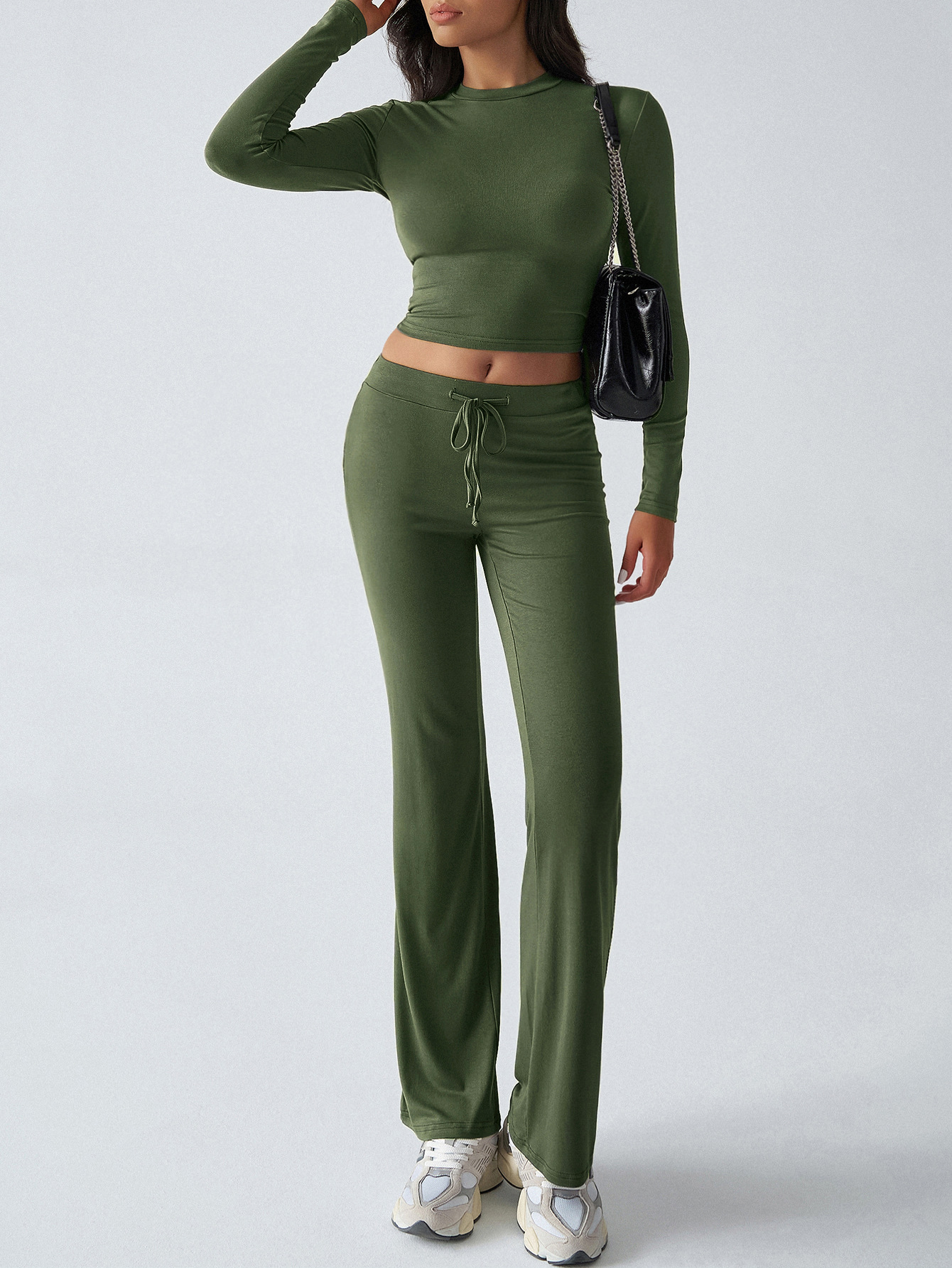 Women's Straight-Leg Pants Suit with Long Sleeves